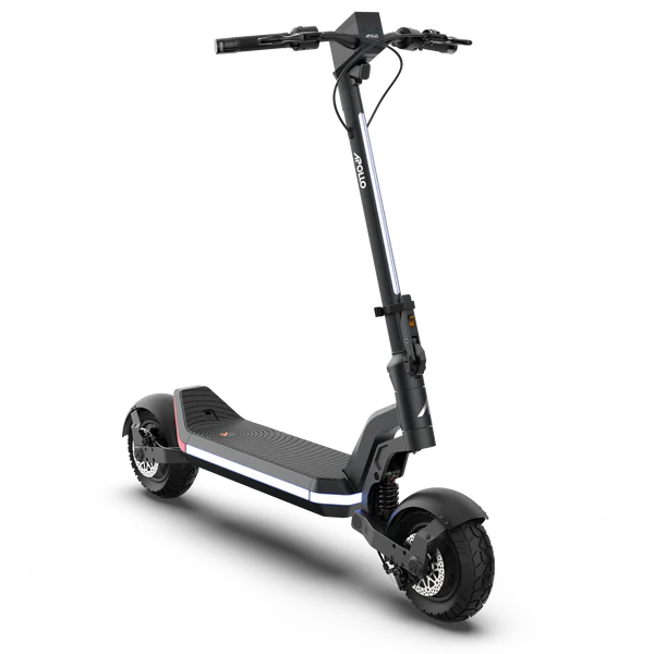 Apollo Phantom 2.0 high-performance electric scooter featuring dual motors, up to ~70 km/h top speed (52V variant), up to ~80 km range (ideal conditions), robust dual suspension, powerful braking, IP66 water resistance, and premium build quality—Apollo’s flagship “best” pick.
