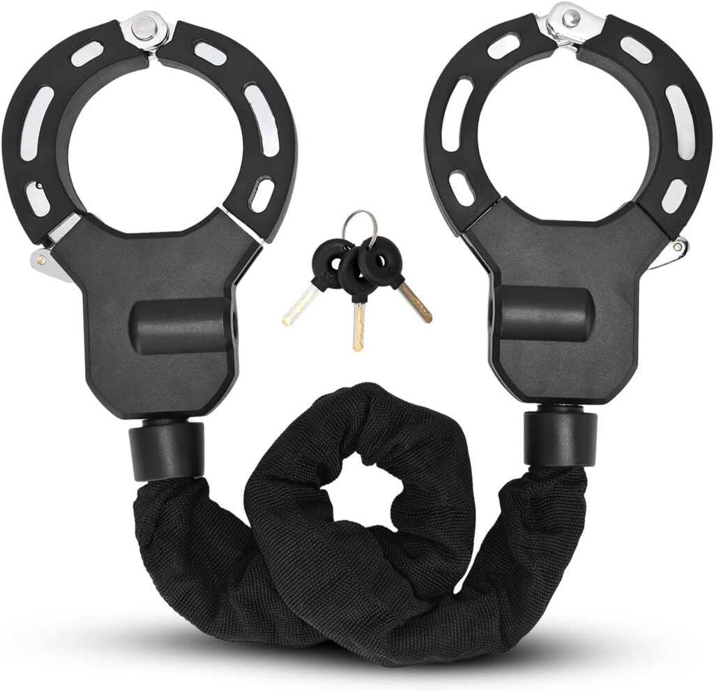 A rugged anti-theft U-lock system with reinforced cable. Perfect for securing e-scooters in public spaces, garages, or workplaces. Quick-release mount included.